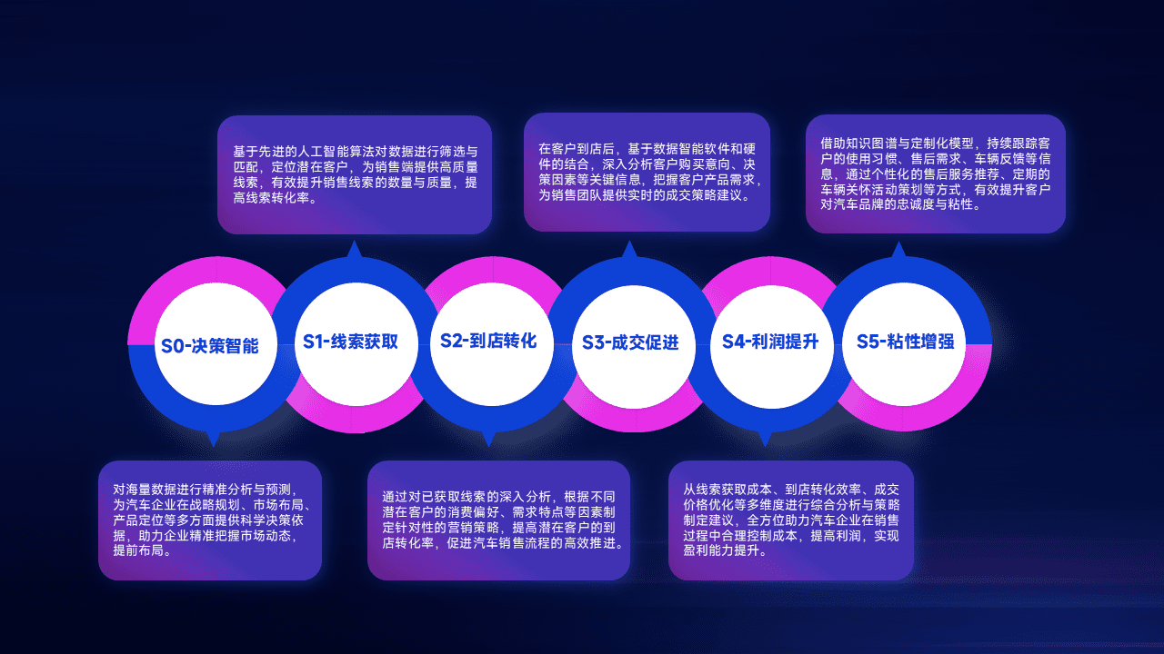 通过拓宽潜在客户来源、、、优化线索分配并提高到店转化率,,,以增强销售效率。。。同时,,,,利用线索数据不断优化分析模型,,有效提升转化率,,,扩大营销影响力。。。